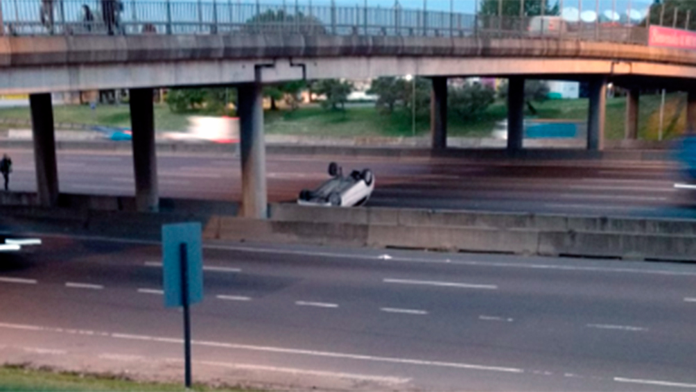 sentido norte perdió el control de su vehículo y volcó sobre el carril lento.