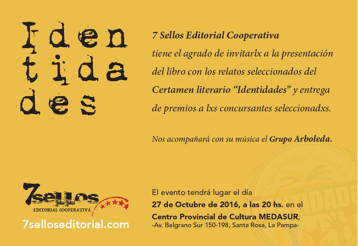 “Identidades” (organizado por la editorial 7 Sellos), el cual está integrado por los finalistas que han sido