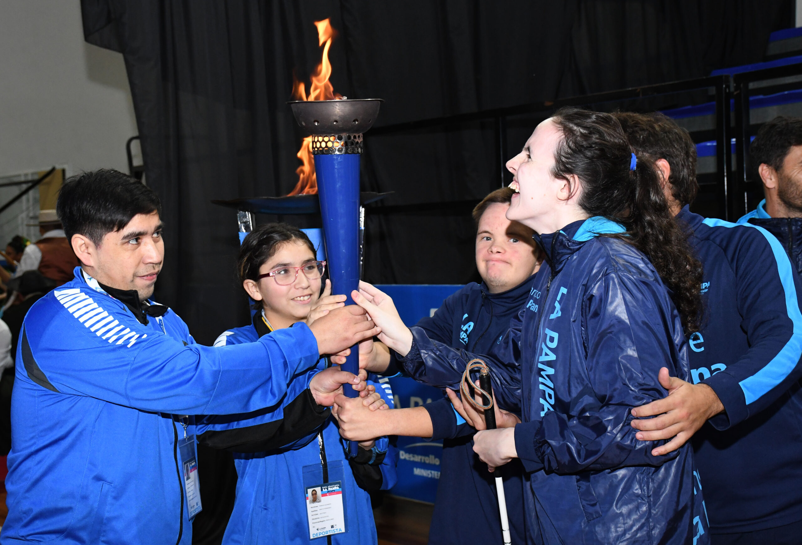 El encendido del pebetero estuvo a cargo del jugador de fútbol retirado Mauro Olivi, de Jacinto Arauz, escoltado por el piquense Bautista Bal y el chileno Roberto Antipani Muñoz. En tanto que la bandera de Chile la portó Miriam Elizabeth Pérez Soto, la de Argentina, Yamil Alfonso y de La Pampa, Melisa Ayala.