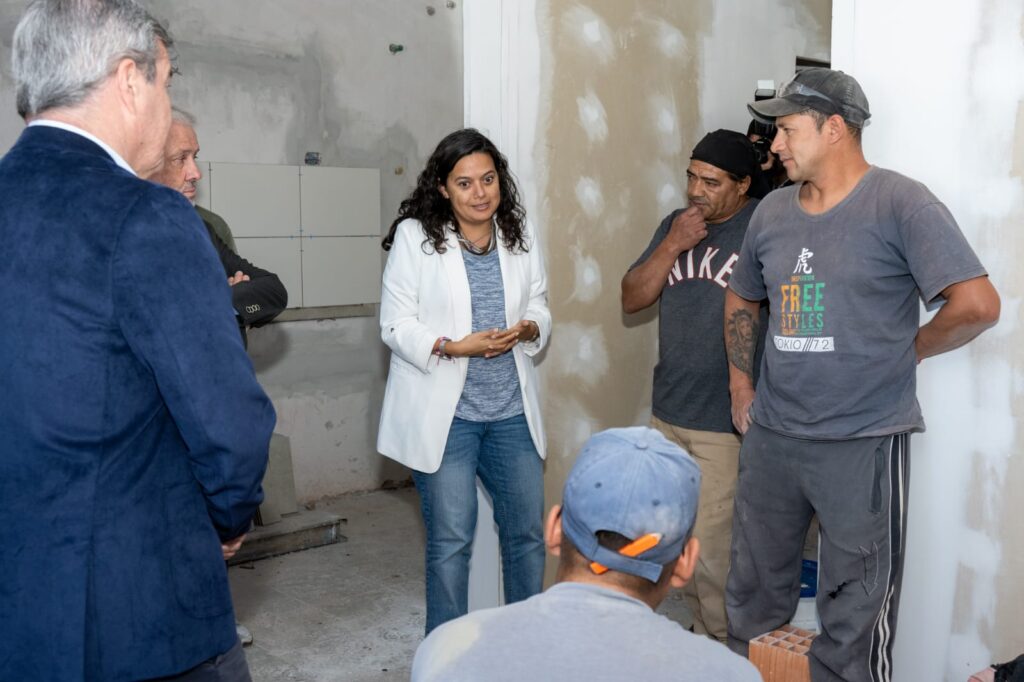 En el marco de la entrega de una vivienda de servicio, destinada al personal policial, y la inauguración de un CDI para 25 de Mayo, la presidenta del Instituto Provincial Autárquico de la Vivienda, Erica Riboyra, junto al ministro de Obras y Servicios Públicos, Julio Rojo, el ministro de Desarrollo Social y DerechosHumanos, Diego Álvarez y otros funcionarios y funcionarias provinciales y locales visitaron las obras que se encuentran en ejecución, con un avance del 60%.