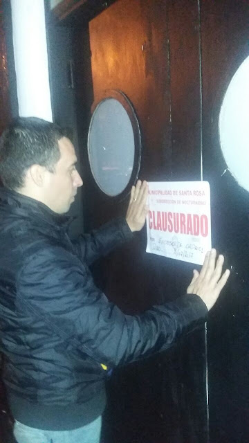 La Municipalidad de Santa Rosa informa que sobre la madrugada de este sábado 15 de julio, personal de la Subdirección de Nocturnidad procedió a la clausura preventiva de un local comercial situado sobre calle Hilario Lagos 467, habilitado como Pizzería con Espectáculos Públicos, por constatarse en el mismo un exceso en la capacidad máxima habilitada para el ingreso de público en 70 personas.