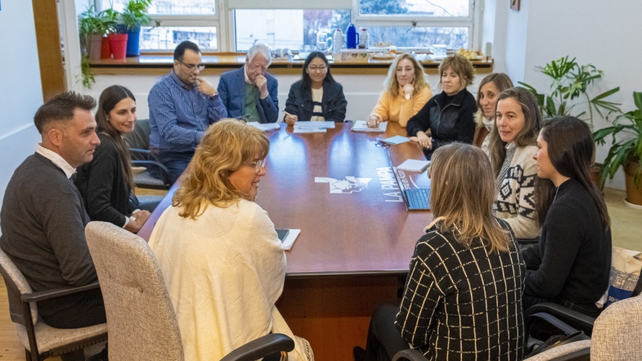 La ministra de Educación de La Pampa, Marcela Feuerschvenger, acompañada por funcionarios y funcionarias de la cartera educativa provincial, recibió esta mañana a representantes de áreas gubernamentales, referentes de asociaciones civiles y especialistas en la temática de la República Oriental del Uruguay, España, Reino Unido y Perú.