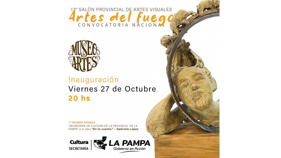 La Secretaría de Cultura del Gobierno de La Pampa invita al acto de apertura y entrega de premios del Salón de Artes Visuales de la Provincia de La Pampa, Sección Artes del Fuego – Edición 2023 de Convocatoria Nacional.