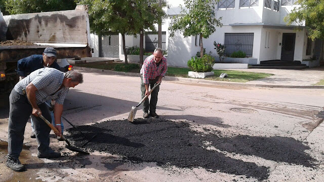 donde con 5 cuadrillas de operarios con camiones volcadores y equipos de bacheo