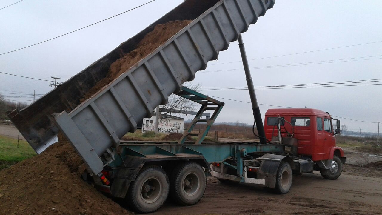 calle Hucal incorporando suelo, se utilizan dos chasis volcadores, una pala