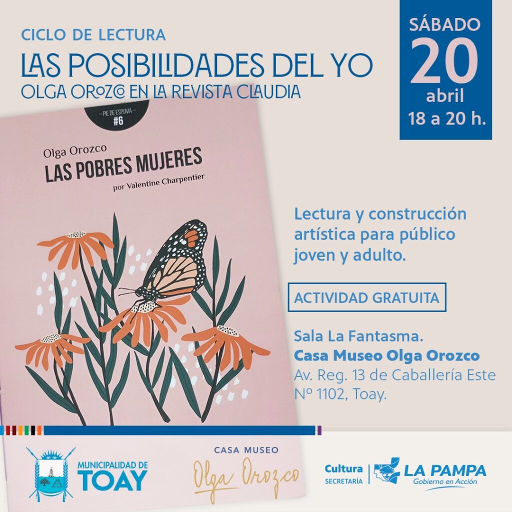 En este ciclo se leen textos recopilados por la editorial La Ballesta Magnífica, colección Pie de espuma, artículos de Olga Orozco publicados originalmente en la revista Claudia entre 1963 y 1974 bajo diversos seudónimos.