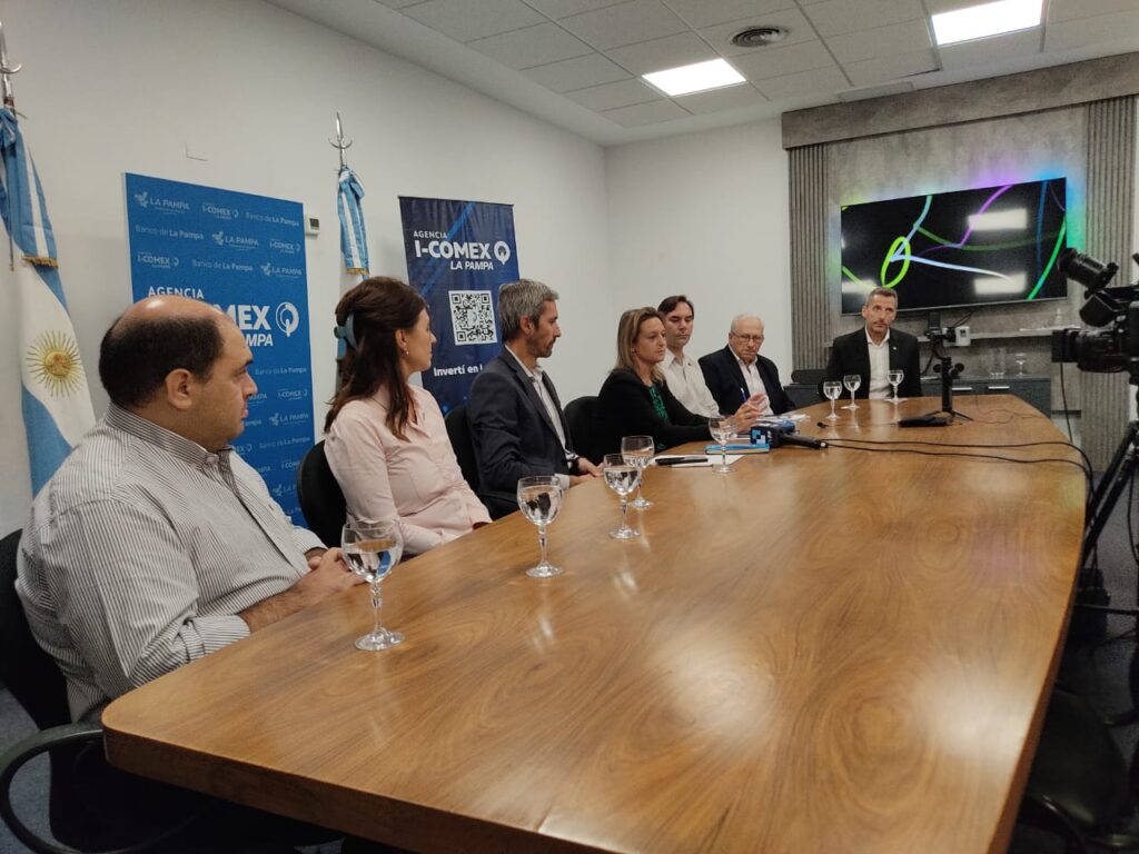 Participaron de la conferencia el director de la Agencia I-COMEX La Pampa, Sebastián Lastiri, la decana de la Facultad de Agronomía, María Lía Molas, el director de Comercio y Competitividad en Ministerio de la Producción, Nicoló Cavallaro, la gerenta de Comercio Exterior de I-COMEX, Eugenia Paturlanne, Carlos Gaccio y Jorge Fabressi en representación del Banco de La Pampa y Juan Francisco Romano en nombre de Asociación Agrícola Ganadera de La Pampa.