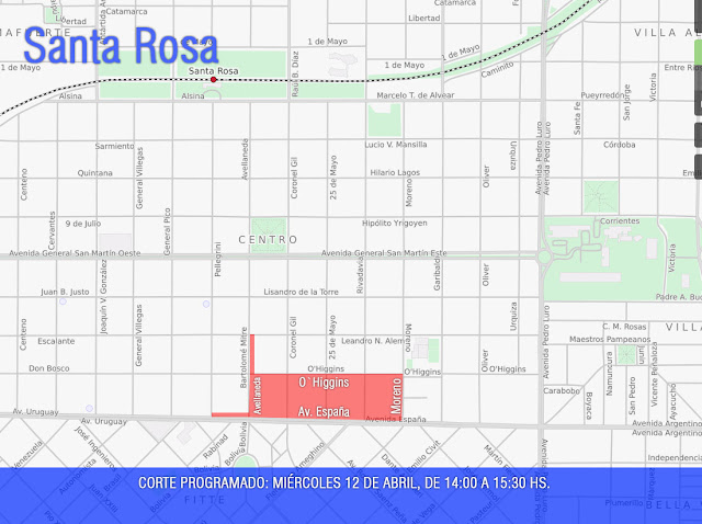 15.30 horas, se producirá un corte programado de energía en la zona céntrica de
