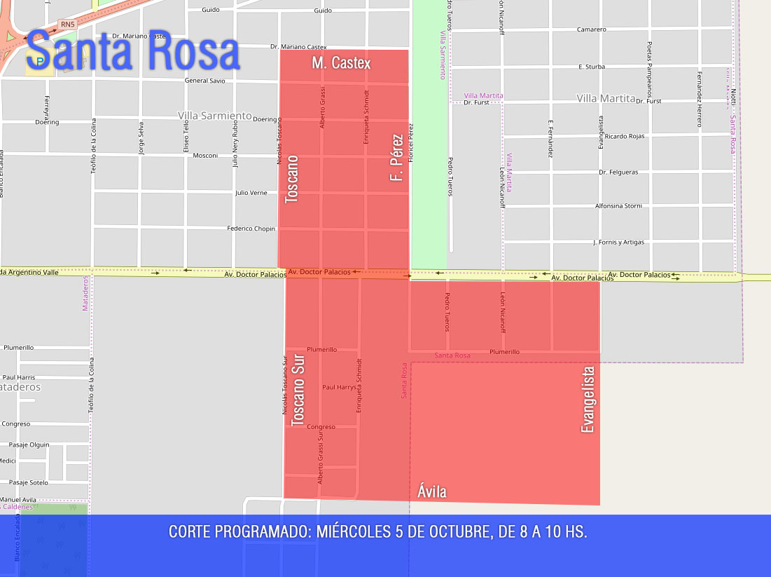 Evangelista Sur, Ávila, Toscano Sur y Toscano hasta reencontrar Castex. Incluye