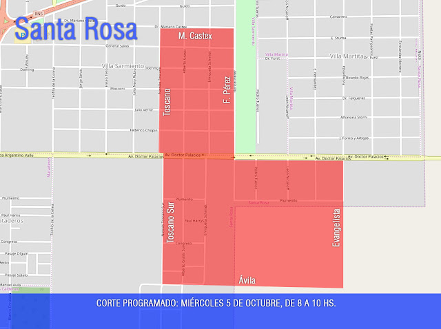 las 8 y las 10 horas, se producirá un corte programado de energía en la zona