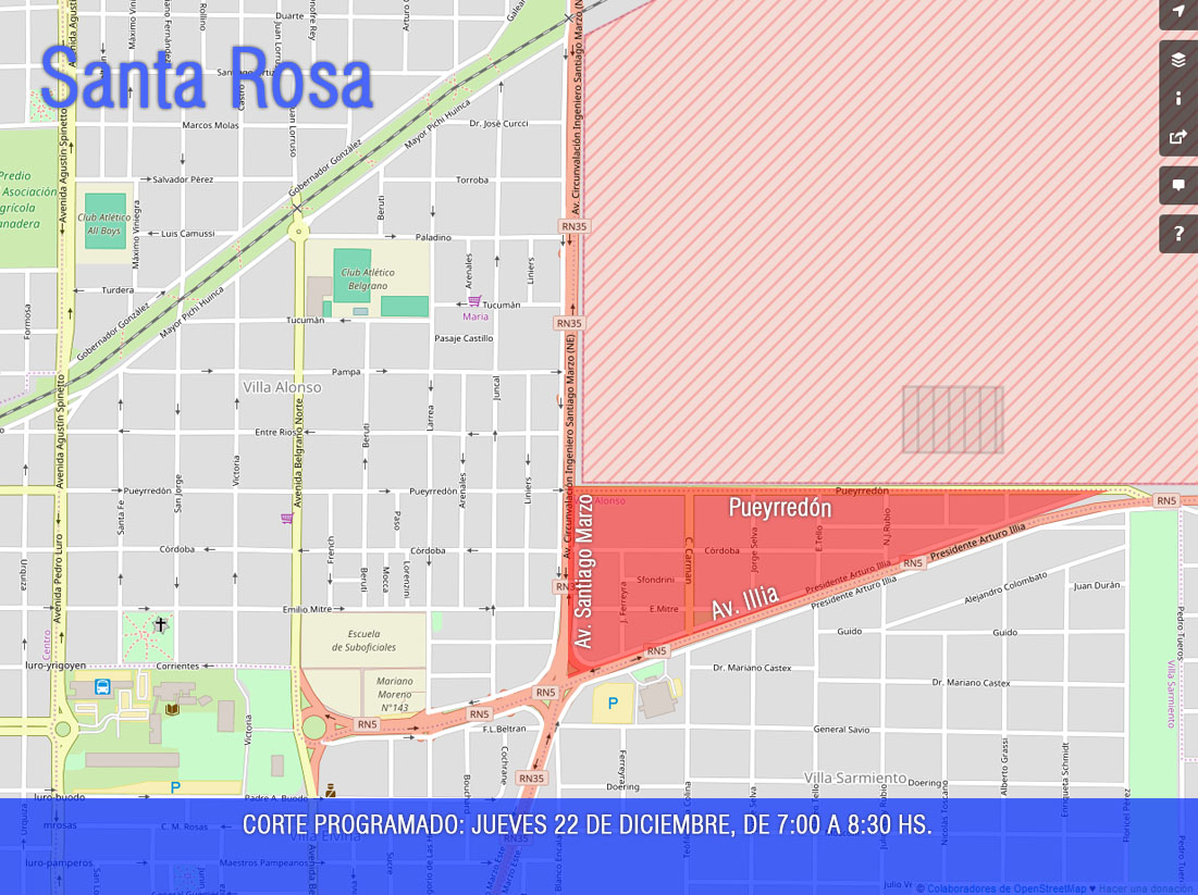restante será desde las 7 a las 10, en el sur de Santa Rosa, en el barrio