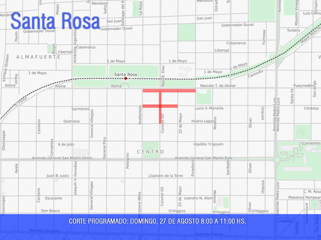 horas, algunas cuadras del centro de Santa Rosa tendrán un corte programado de