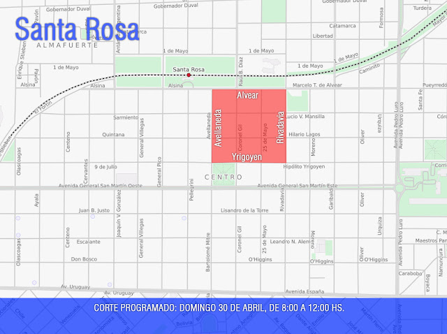 calles Alvear, Rivadavia, Yrigoyen y Avellaneda, en la zona céntrica de Santa