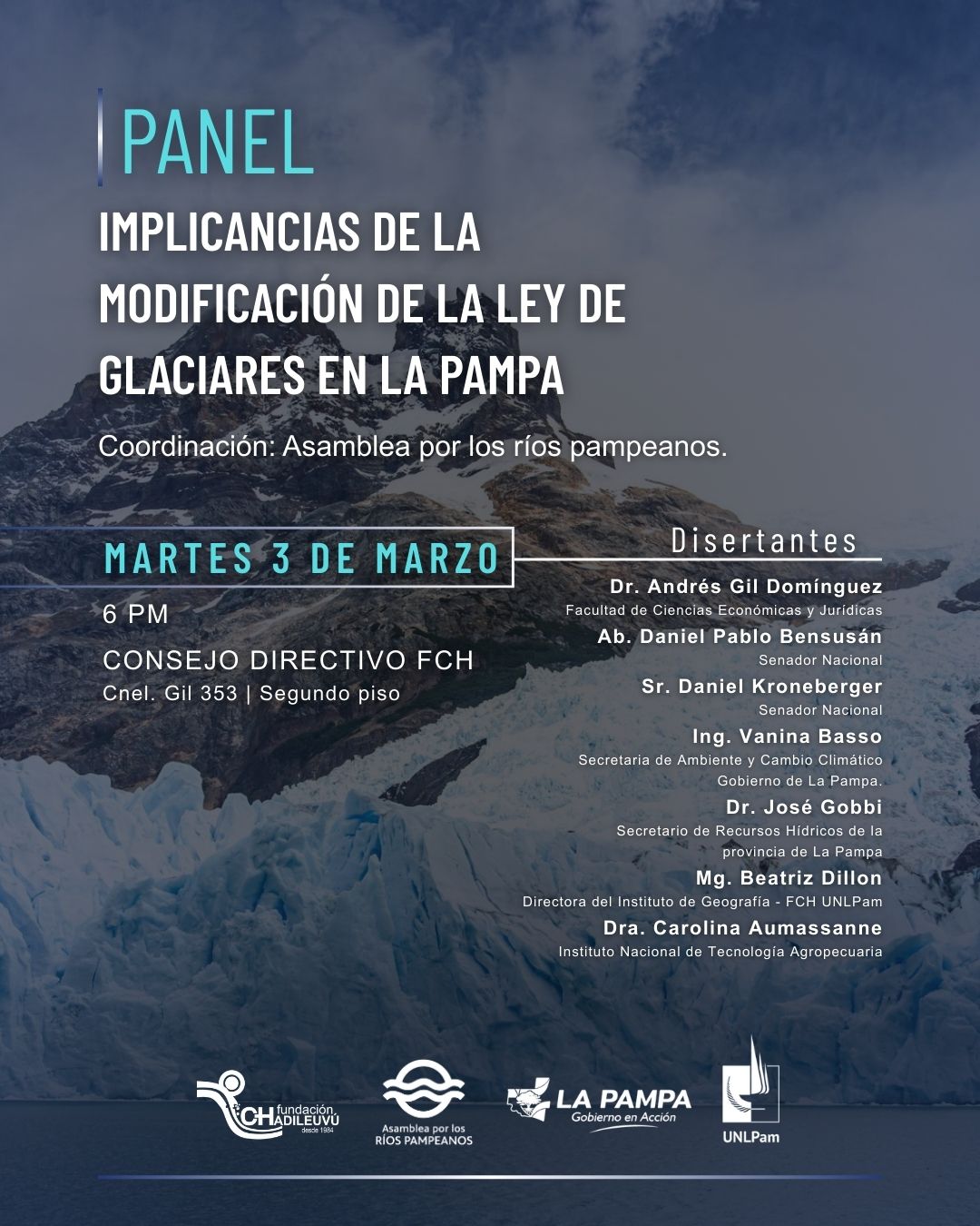 La comunidad pampeana está invitada a participar del Panel «Implicancias de la modificación de la Ley de Glaciares en La Pampa», un espacio de debate y análisis sobre el proyecto de reforma de la Ley N° 26.639.