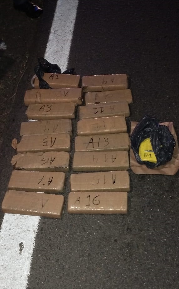Finalmente, los involucrados, un hombre y una mujer de 34 y 32 años respectivamente, ambos domiciliados en Eduardo Castex, fueron detenidos. En el interior del vehículo se halló un ladrillo de marihuana mientras que, como resultado de un rastrillaje en la zona, se hallaron 16 ladrillos de marihuana, con un peso total de 14,901 kgs. y un ladrillo de cocaína de 1, 040 kgs.