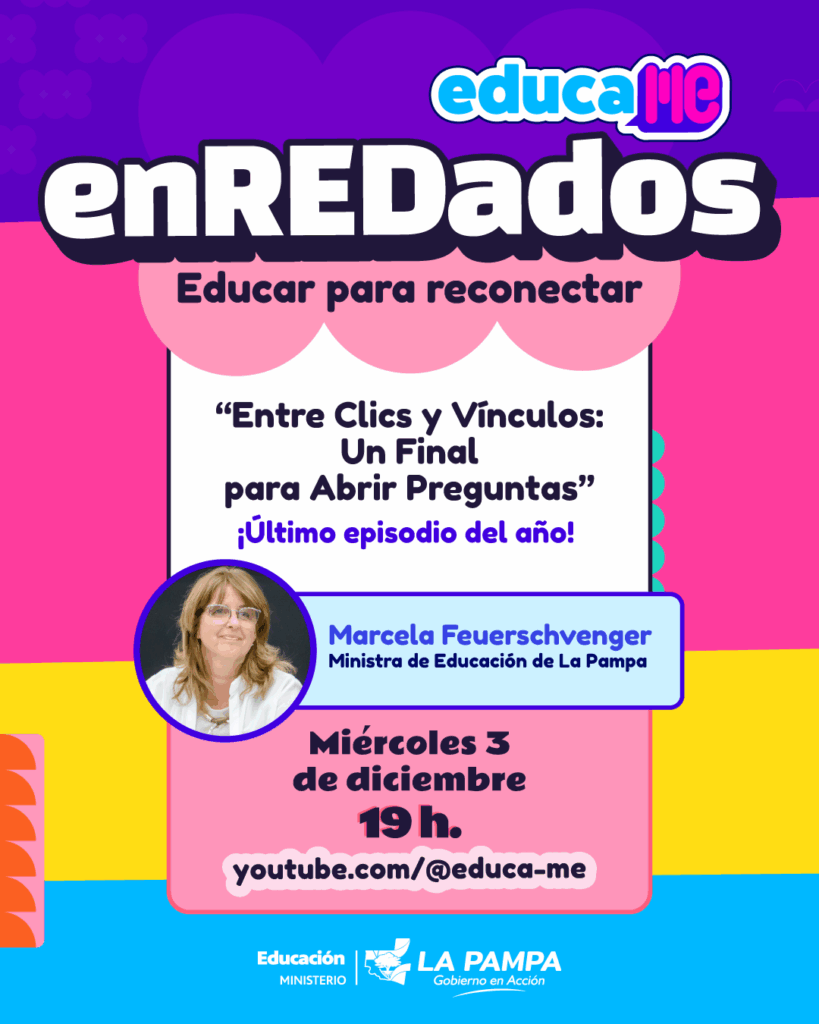 «Entre Clics y Vínculos: Un Final para Abrir Preguntas” es el nombre del episodio que contará con la presencia de la ministra de Educación de La Pampa, Marcela Feuerschvenger.