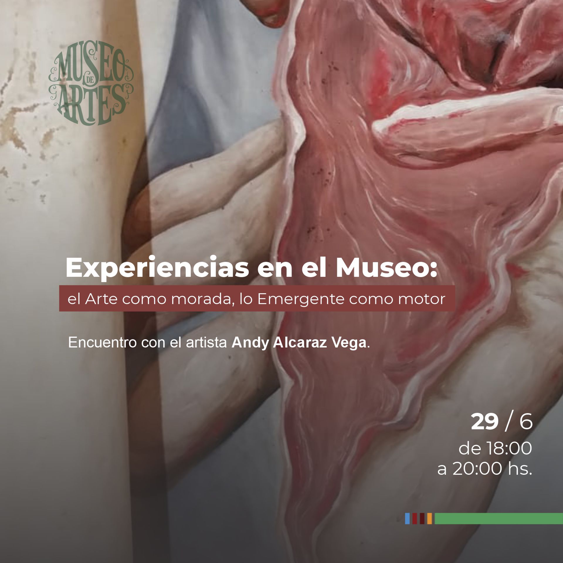 La experiencia iniciará con un recorrido de la muestra en general, durante el cual Andy abordará entre otros temas, la producción artística en el contexto actual desde la mirada de un artista emergente,.el concepto y evolución de su pintura y la creación de obras con materiales y soporte no convencionales.