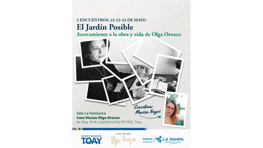El encuentro «El Jardín Posible» busca acercar a los participantes a la vida y obra de la poeta Olga Orozco (1920-1999), proporcionando herramientas para su conocimiento y difusión a diversos públicos a través de lecturas e intercambio. La coordinación está a cargo de la poeta y editora Marisa Negri, especialista en la obra de Orozco, de quien ha publicado varias antologías y estudios. Negri también cuenta con una extensa obra poética propia y trabajos de edición en colaboración.