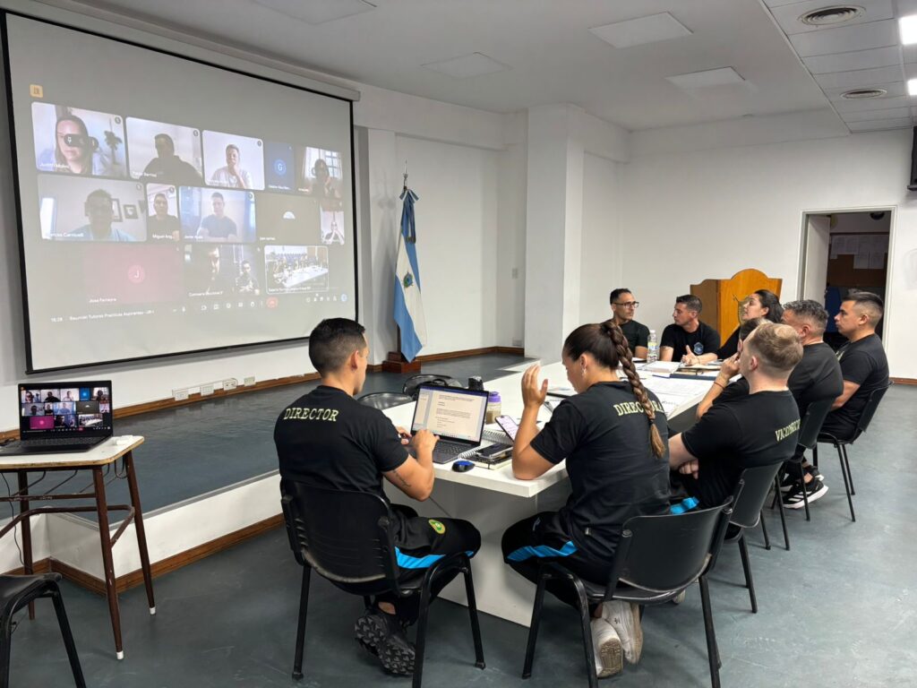El equipo del Instituto Superior Policial (ISP) y de la Subsecretaría de Formación del Ministerio de Seguridad y Justicia realizaron este martes 2 de diciembre encuentros virtuales con el personal policial que se desempeñará como tutor de las prácticas profesionales de 123 aspirantes a agentes en cada una de las cuatro Unidades Regionales, desde el 10 de diciembre y hasta el 8 de febrero.