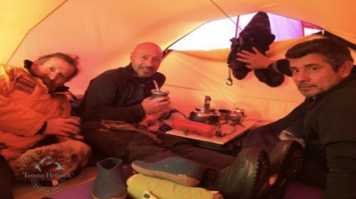 trasladados a la base Barneo, para iniciar la marcha; con una temperatura de