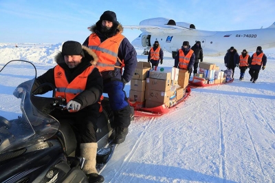 en la pista de hielo de la base rusa Barneo, que demoró la partida de la
