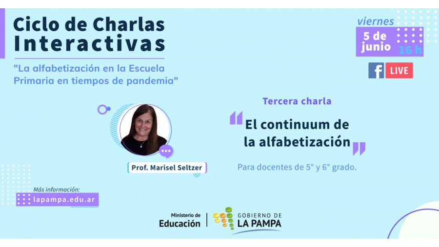 En el marco del ciclo de charlas interactivas “La alfabetización en la Escuela Primaria en tiempos de Pandemia”, la Dirección de Educación Primaria del Ministerio de Educación, finalizará este viernes a las 16 con la tercera y última charla “El continuum de la alfabetización”, que involucra a docentes de 5° y 6° grado.