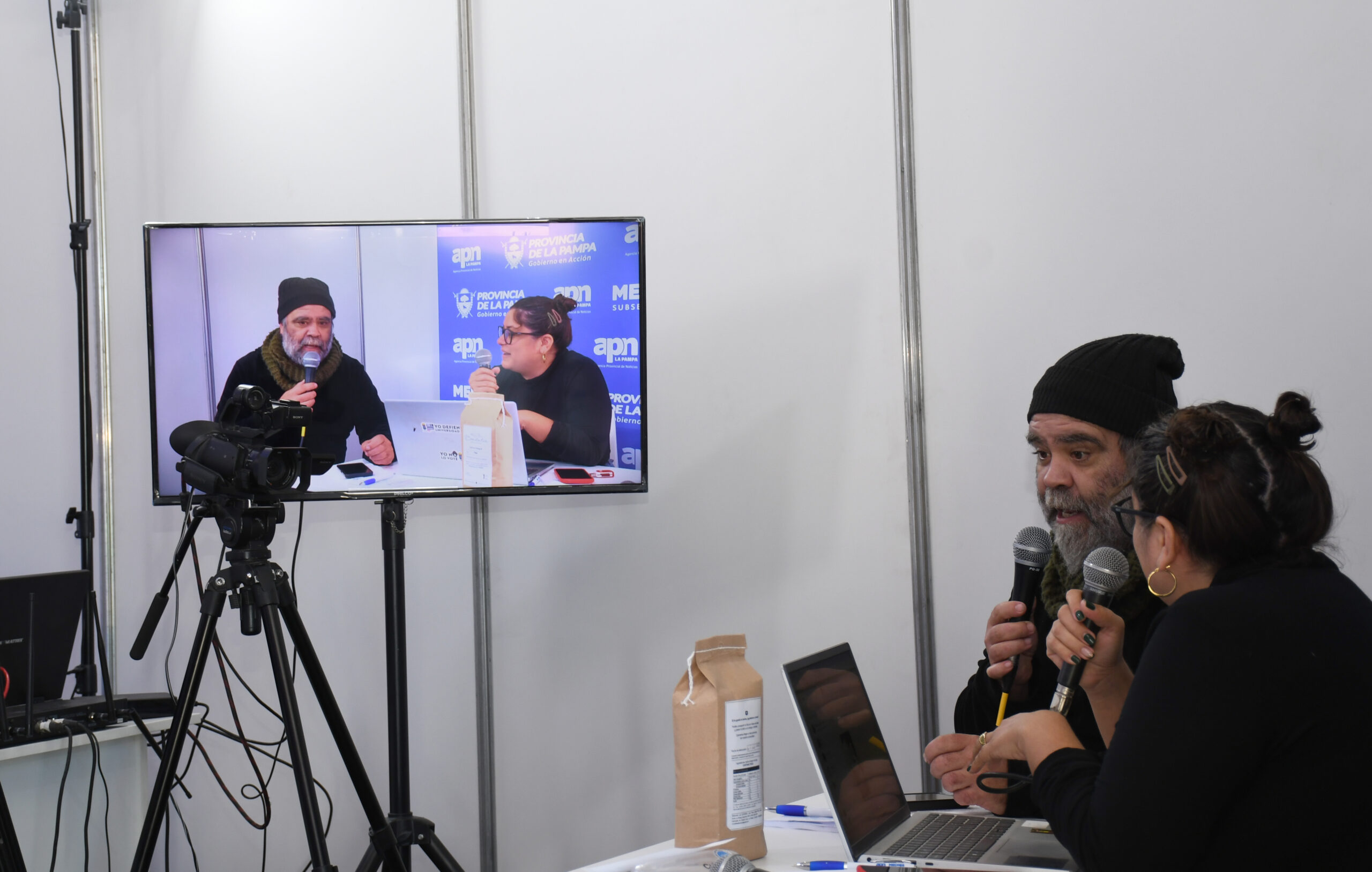 El espacio propio que tuvo la Agencia Provincial de Noticias (APN) en la exitosa ExpoPyMEs 2025 brindó un servicio vital para los medios de comunicación que llegaron desde distintos puntos de La Pampa y del país para cubrir las tres jornadas de actividad. Hubo emisoras radiales que hicieron base para sus transmisiones, periodistas gráficos que hicieron sus notas en las computadoras de este centro de prensa y también salieron al aire transmisiones de streaming desde el estudio especial que se montó.