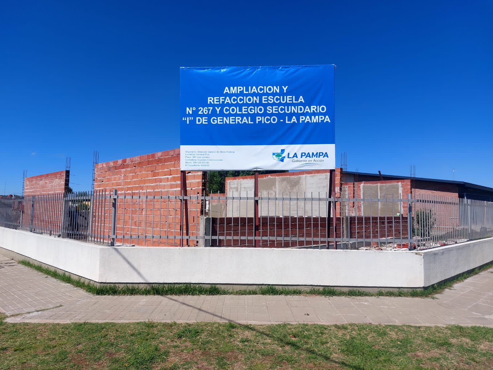 El Gobierno de la Provincia inició la obra de ampliación y refacción de la Escuela 267 y Colegio Secundario I, de General Pico, ubicado en barrio Bicentenario. El edificio refaccionado sumará casi 1.000 metros cuadrados y una inversión de 620 millones de pesos.