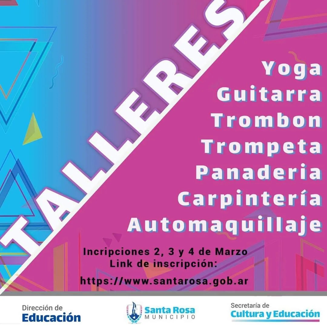 La Dirección Educación de la Municipalidad de Santa Rosa informa que a partir de hoy martes 2 de marzo, comienza la primera etapa de inscripciones correspondiente a los talleres cuatrimestrales de mencionado área. Los mismos se llevarán a cabo de manera virtual, presencial o ambas, con cupos limitados.