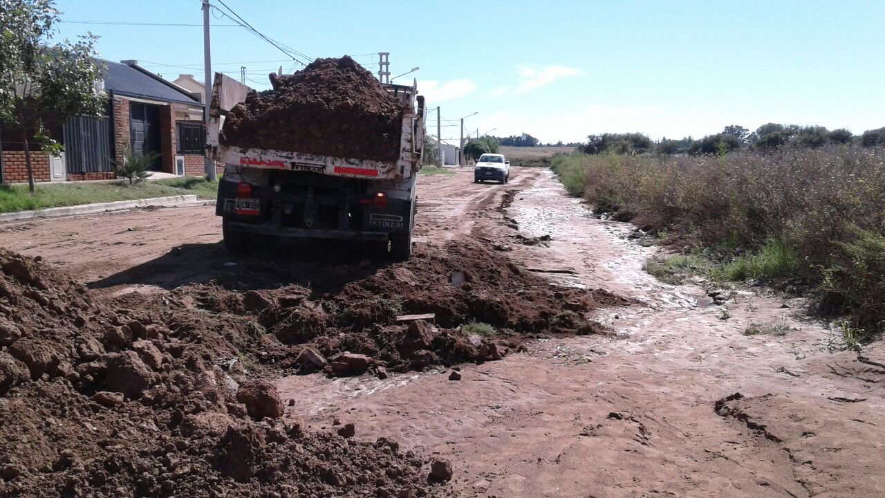 repaso con motoniveladoras y aporte de suelo en distintas arterias de los