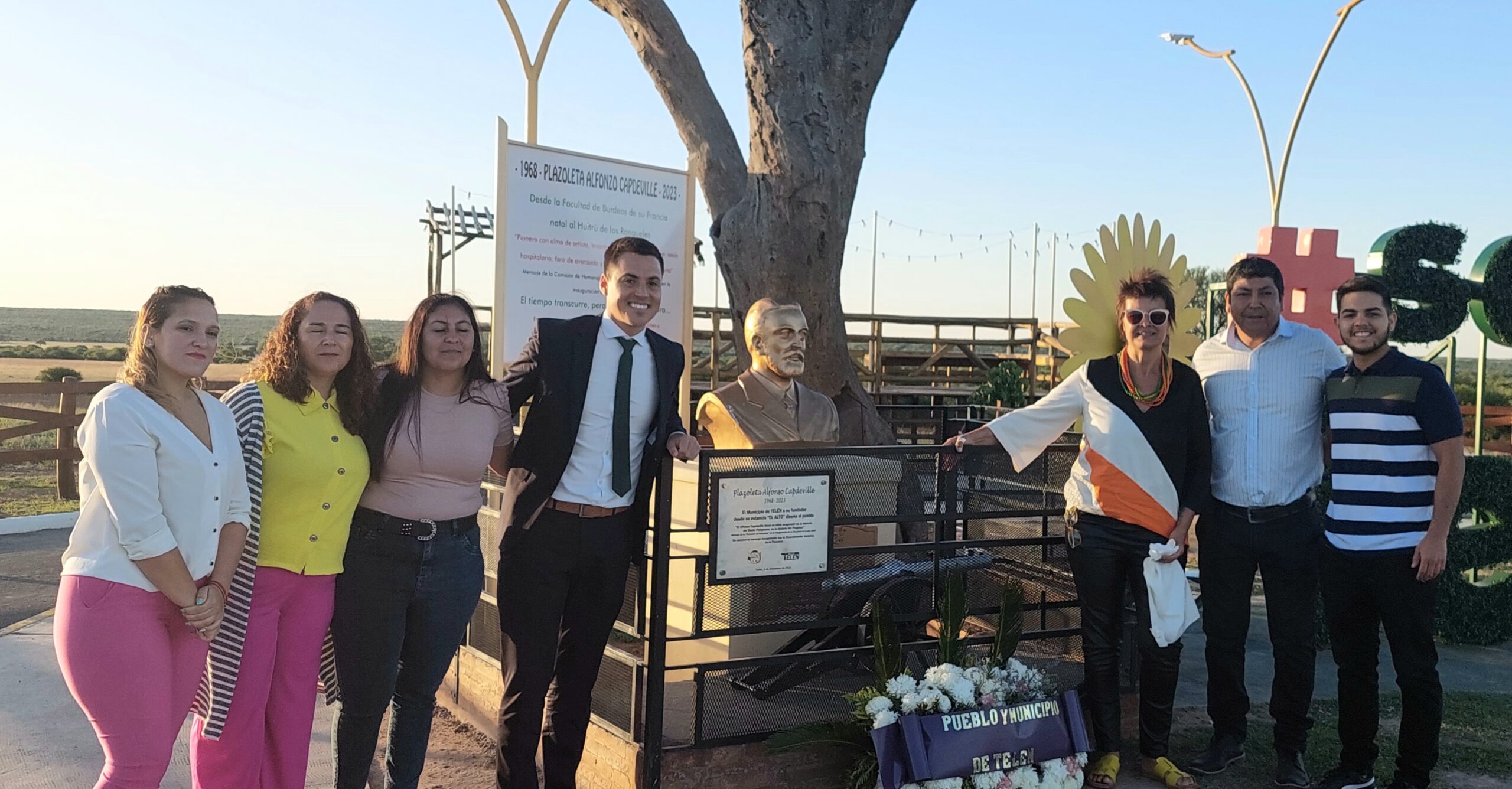 Desde «el alto» todos los presentes acompañaron la remodelación de la plazoleta «Alfonso Capdeville» donde se colocaron ofrendas florales y dirigieron sus palabras las autoridades, «Gracias – dijo Echeveste- por estar siempre vecinos y vecinas, Gobierno provincial para que Telén sea una localidad de progreso en donde siempre estemos mejor. Este 10 de diciembre cumplimos ocho años de gestión, una responsabilidad que nos honra y agradecemos».