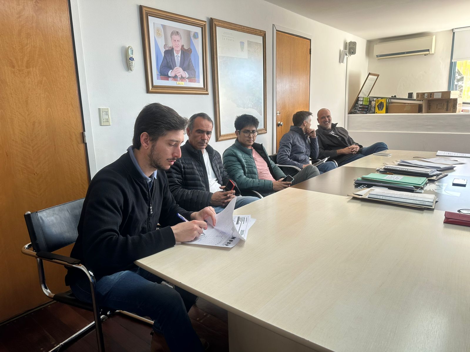 En el Ministerio de Obras y Servicios Públicos, con la presencia de la ministra de Producción, Fernanda González y la directora de Obras y Servicios Públicos, Antonela Dosso, se desarrolló el acto para ejecutar la obra del sistema de tratamiento de efluentes del Parque Agroalimentario y Apícola de Santa Rosa.