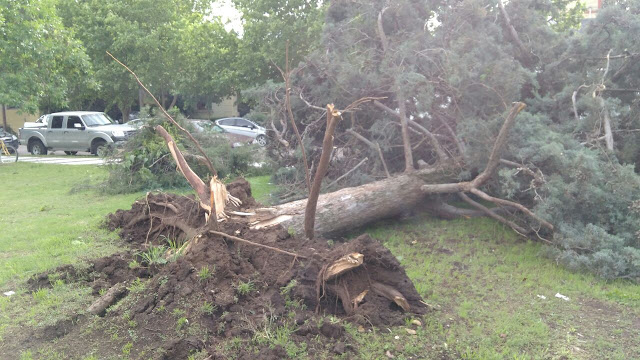 en French y Saavedra donde la caída de un pino provocó la rotura de caños de agua