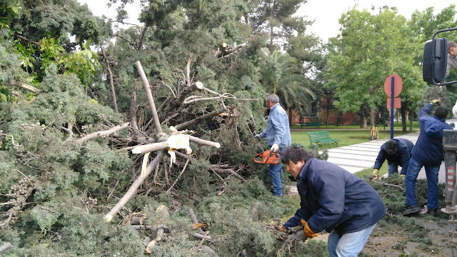 fue partido al medio, en la Plaza Don Bosco se trozó y retiró un pino caído, de