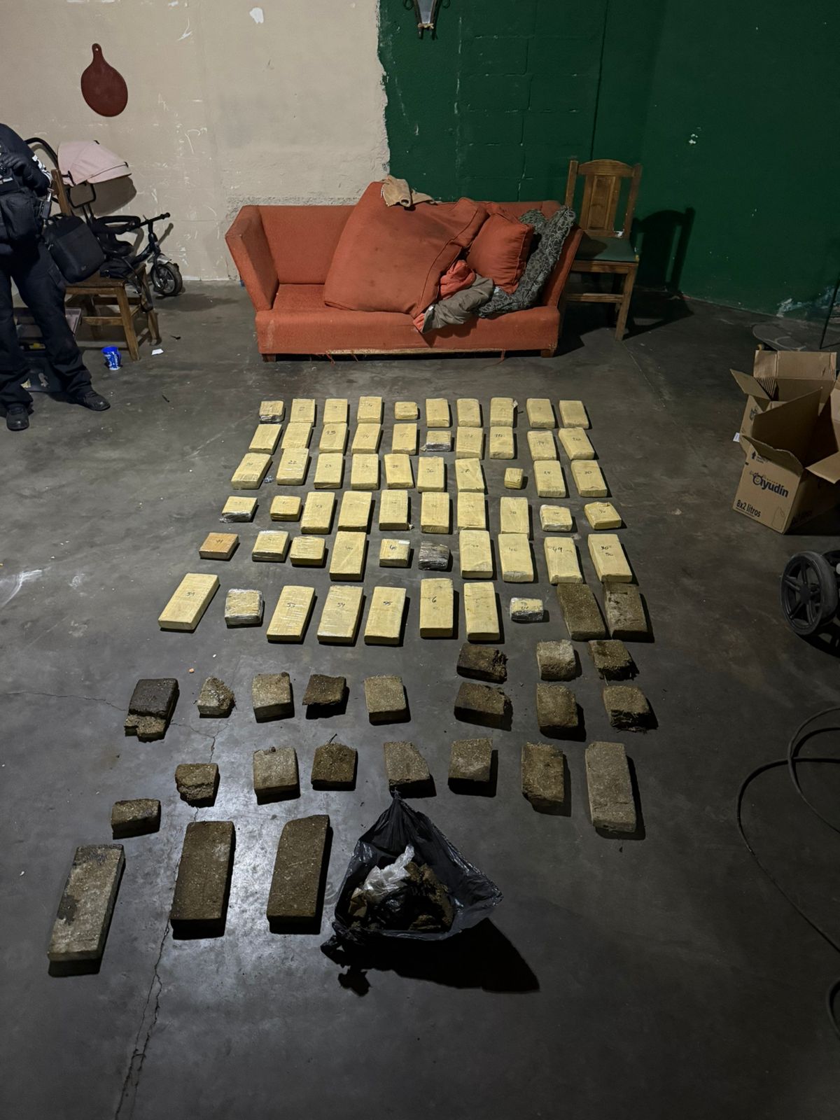 Como resultado de los allanamientos realizados, se incautaron en total 64 kilos con 616 gramos de marihuana, distribuidos en 82 ladrillos prensados, además de otros envoltorios y restos de sustancia vegetal.