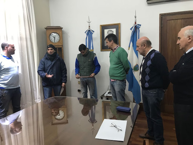 recibió a los empleados municipales de la cuadrilla de pintura de obras