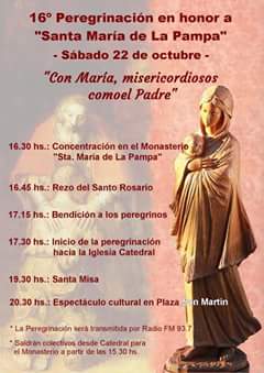 16° Peregrinación en Honor a la Virgen de La Pampa, que se realizará mañana