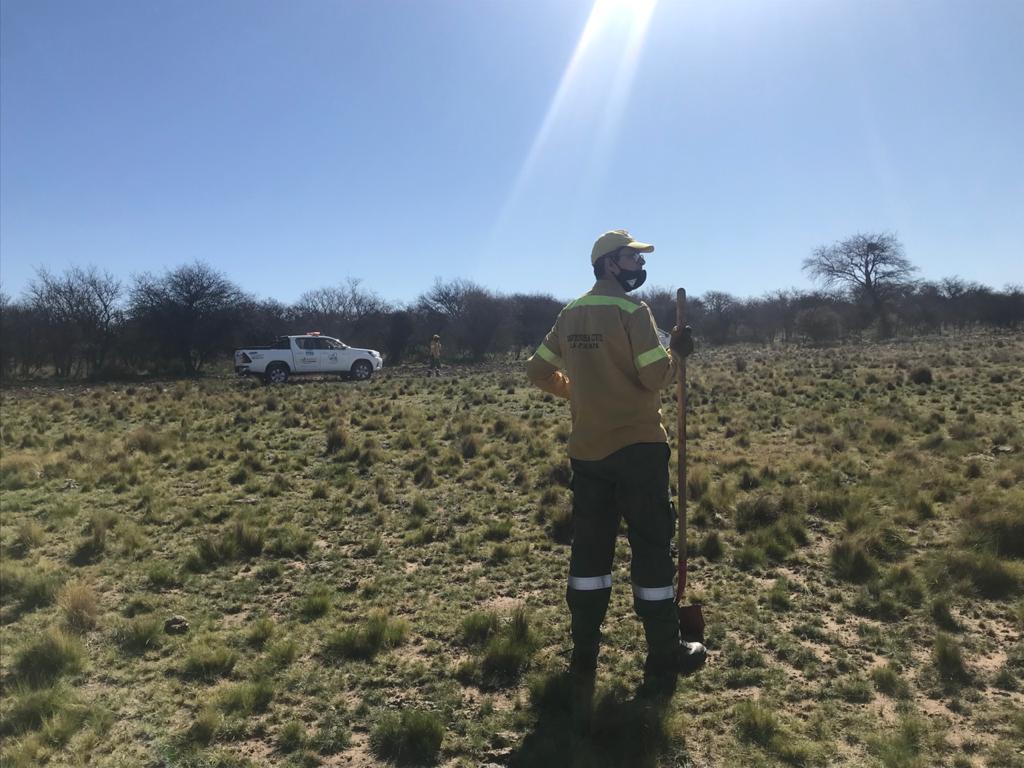 Este lunes una cuadrilla de Defensa Civil con acompañamiento de Bomberos Voluntarios de Miguel Riglos y Ataliva Roca lograron contener un incendio en la Ruta Provincial N° 14 a la altura del kilómetro 72.