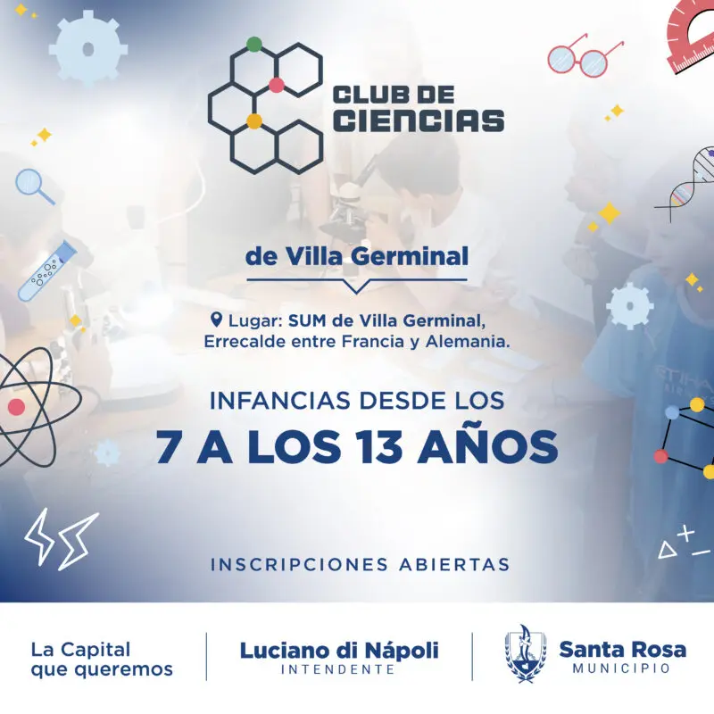 La Municipalidad de Santa Rosa informa que se encuentran abiertas las inscripciones para el Club de Ciencias y Tecnología de Villa Germinal.