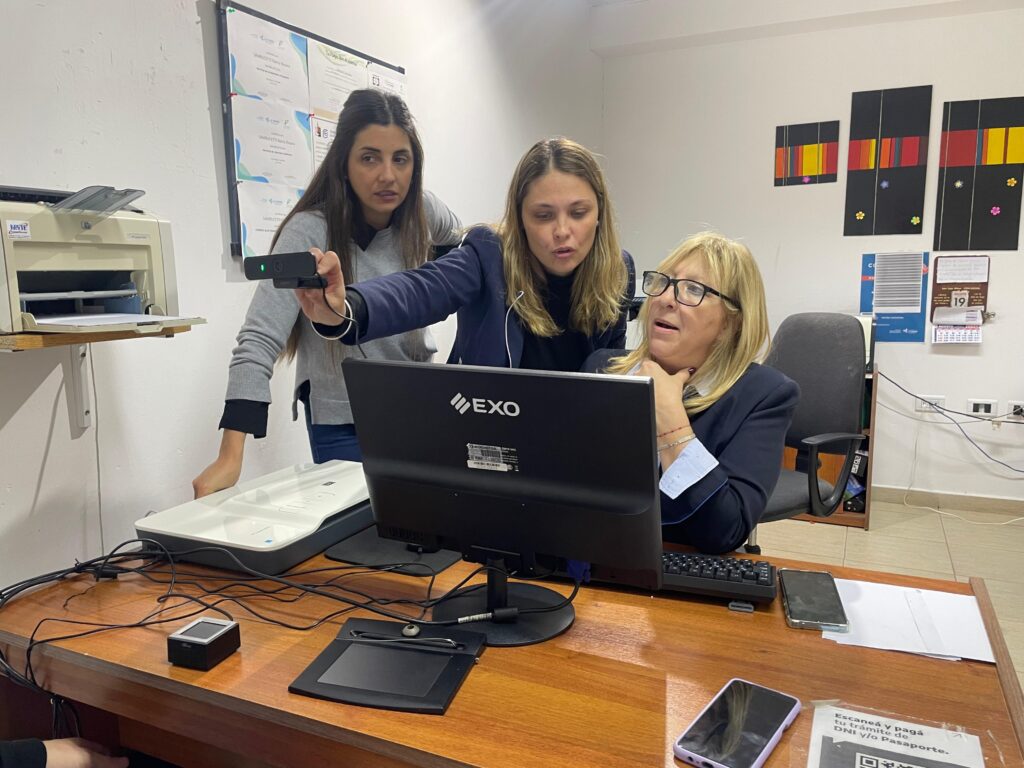 Los técnicos del Ministerio, Martin Fontana y Roberto Carlos Weiss, y Ana Paula Domenice del área de Documentación, fueron recibidos por la jueza de Paz Laura Etchevers, acompañada por Nancy Sambucetti y Barbie Constantino, empleadas del Registro Civil. El equipo capacitó al personal en el uso del sistema de toma de trámites de DNI y Pasaportes.