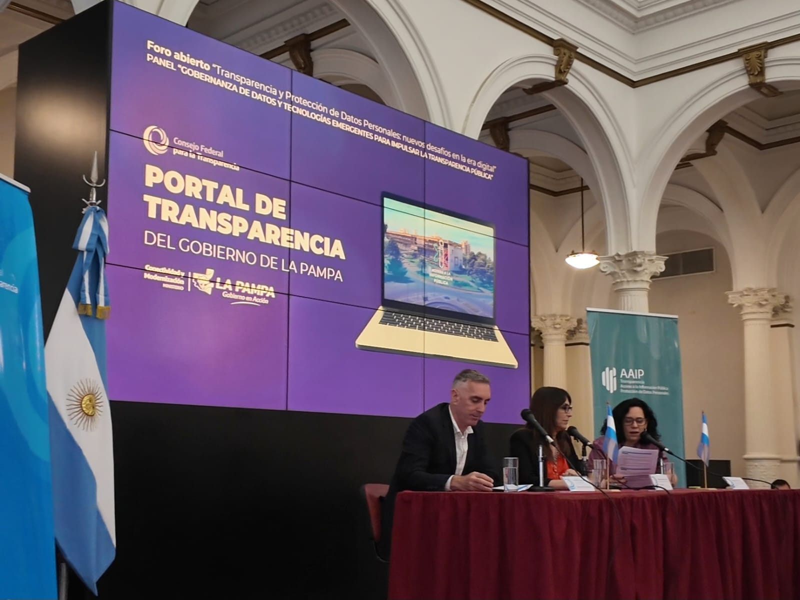 Se desarrolló recientemente en la Ciudad Autónoma de Buenos Aires la XVI Asamblea General Ordinaria del Consejo Federal para la Transparencia. Ambas jornadas tuvieron lugar en el Palacio Sarmiento, con la presencia de las y los representantes de 15 provincias. Por La Pampa, asistieron la subsecretaria de Modernización, Carmen Sierra, y el director general de Acceso a la Información Pública y Gobierno Digital, Damián Aldama. Con una destacada participación en el Consejo desde el año 2022, La Pampa viene realizando un trabajo coordinado con la Agencia Nacional de Acceso a la Información Pública (AAIP), que año a año tiene su instancia de presentación en el ámbito del Consejo Federal. En esta oportunidad, el miércoles 3 se presentó durante el foro abierto “Transparencia y Protección de Datos Personales: nuevos desafíos en la era digital” el Portal de Transparencia del Gobierno de La Pampa, anunciado recientemente por el Ministerio de Conectividad y Modernización. El Consejo Federal para la Transparencia propone la cooperación técnica entre provincias para avanzar en políticas públicas que contribuyan a los principios de Transparencia y de Acceso a la Información Pública. Está presidido por la titular de la Agencia de Acceso a la Información Pública, Beatriz de Anchorena, y por el referente de Santa Fe, Marcelo Truco, vicepresidente del Consejo.