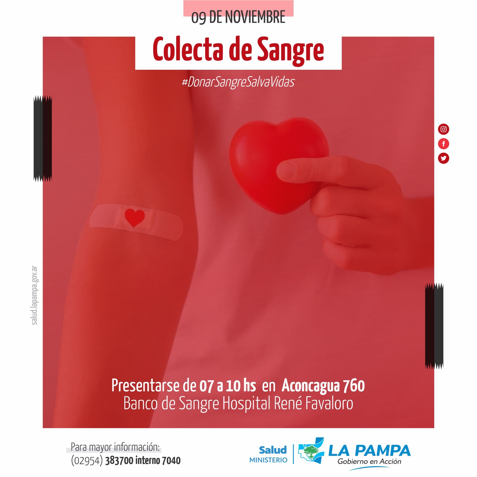 Colectas «La idea de la colecta es una forma de acercarnos a la comunidad con el mensaje de la importancia de donar sangre, como hacía mención anteriormente, la sangre no se puede fabricar, es un componente que circula dentro de nuestro cuerpo y lo tenemos que donar porque no hay otra forma de reemplazarlo. Por cada unidad de sangre que dona una persona se pueden llegar a salvar hasta 4 vidas, porque de esa extracción se obtienen el plasma, los crioprecipitados, los glóbulos rojos y las plaquetas, que son elementos de uso diario en las intervenciones intrahospitalarias. Ninguno de nosotros sabe cuando un familiar nuestro o nosotros mismos, podemos llegar a necesitar una transfusión de sangre, por este motivo siempre tenemos que tener el hábito o la conducta de ir a donar sangre, porque tiene que haber stock en los bancos de sangre para que podamos hacer cirugías, atender partos, atender pacientes accidentados, realizar tratamientos oncológicos, etc.». Respecto a la extracción de sangre explicó que se trrata de un proceso simple, «la extracción en sí dura entre 7 y 10 minutos, no es dolorosa y el desarrollo de estos procesos siempre está supervisado por personal especializado que acompaña a los donantes». Para finalizar la profesional enfatizó «entendiendo la importancia de contar con reservorios de sangre en nuestros bancos, es que invitamos a la comunidad a ser parte de esta colecta que se desarrollará el día 9 de noviembre a partir de las 7, Cabe recordar que las transfusiones de sangre ayudan a que pacientes con enfermedades potencialmente graves vivan más tiempo, con mejor calidad de vida, y posibilitan la realización de intervenciones médicas y quirúrgicas complejas, como así también tienen una función vital en la atención maternoinfantil, el embarazo y las respuestas de emergencia».