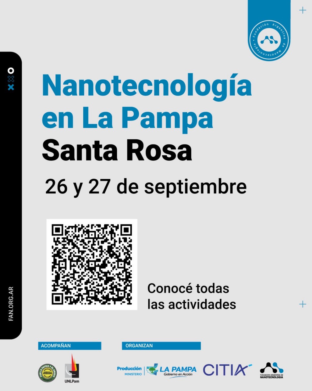 En ese marco los días 26 y 27 de septiembre se llevarán a cabo tres actividades en la ciudad de Santa Rosa, dirigidas a distintos sectores, con el objetivo de seguir fortaleciendo el ecosistema científico-tecnológico e industrial pampeano y promover la incorporación de la nano en dichos sectores.