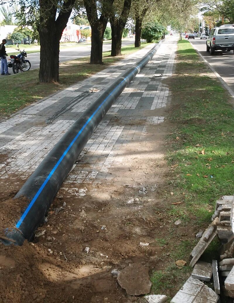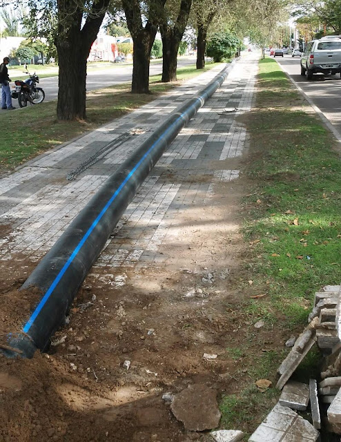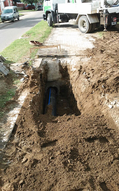 trabajando desde la mañana de hoy en la instalación del último tramo de cañería