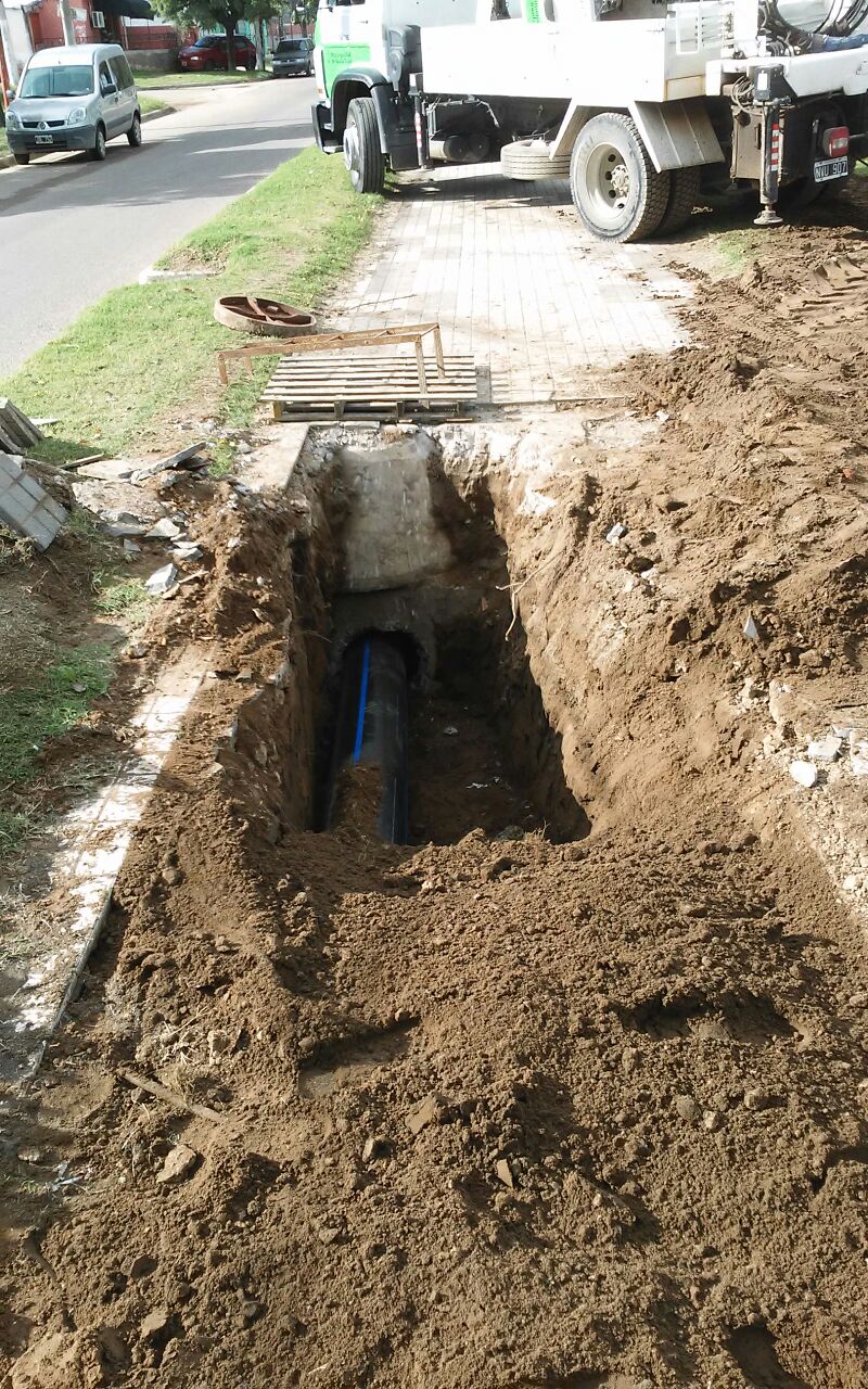 propia en las tareas de zanjeo sobre la cámara pluvial.