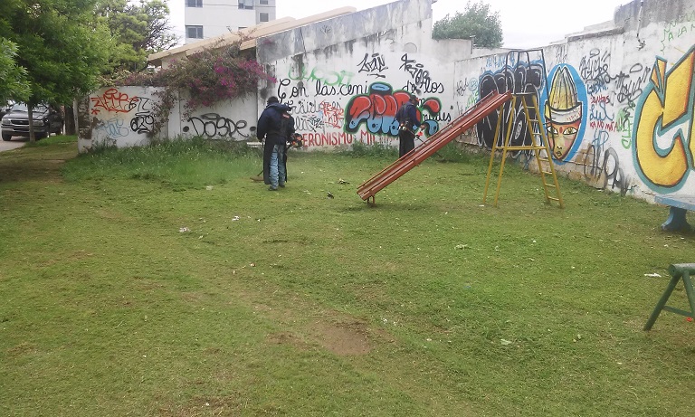 ayer por la tarde trabajos de desmalezamiento con y arreglo del espacio verde