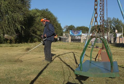Villa Santillán: corte de césped en espacio Verde del barrio.