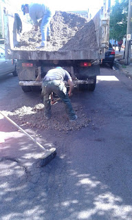 con tosca de baches grandes, como medida paliativa y a efectos de evitar